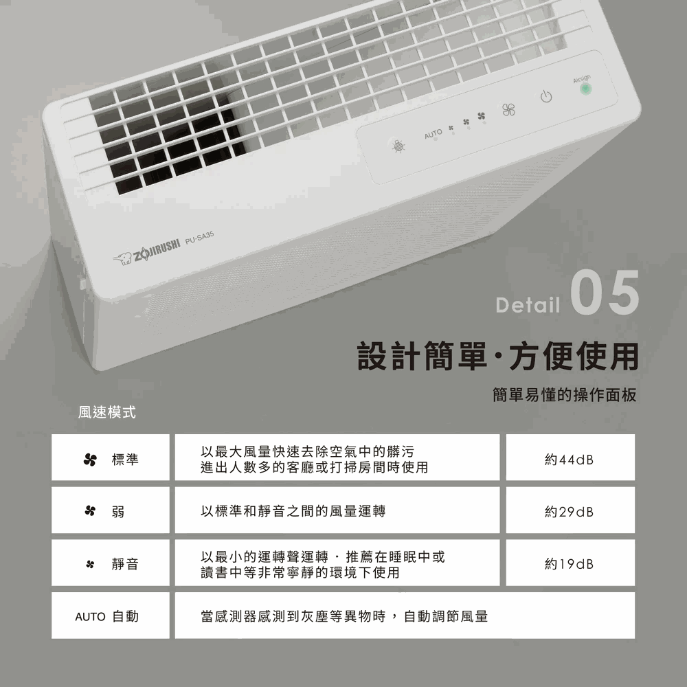 ZOJIRUSHI 象印 超靜音輕巧型空氣清淨機PU-SAF35